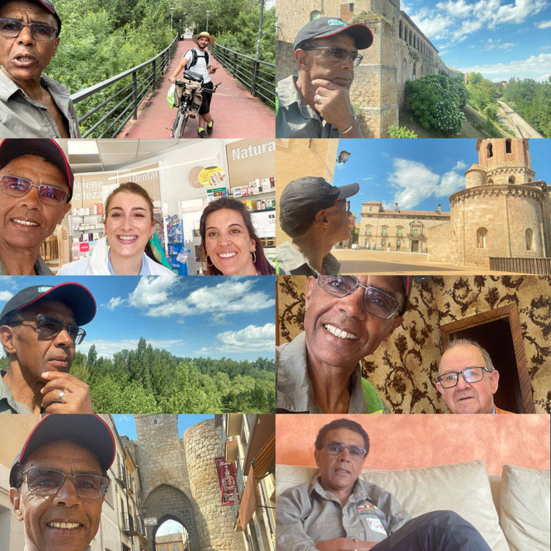 J’ai mis 4 heures pour sortir de Madrid par les pistes cyclables aujourd’hui 103 km sous une chaleur écrasante, je me suis nourri de bananes, noix de cajou, jus d’orange et coca pour avancer et terminer cette journée.