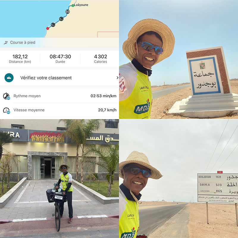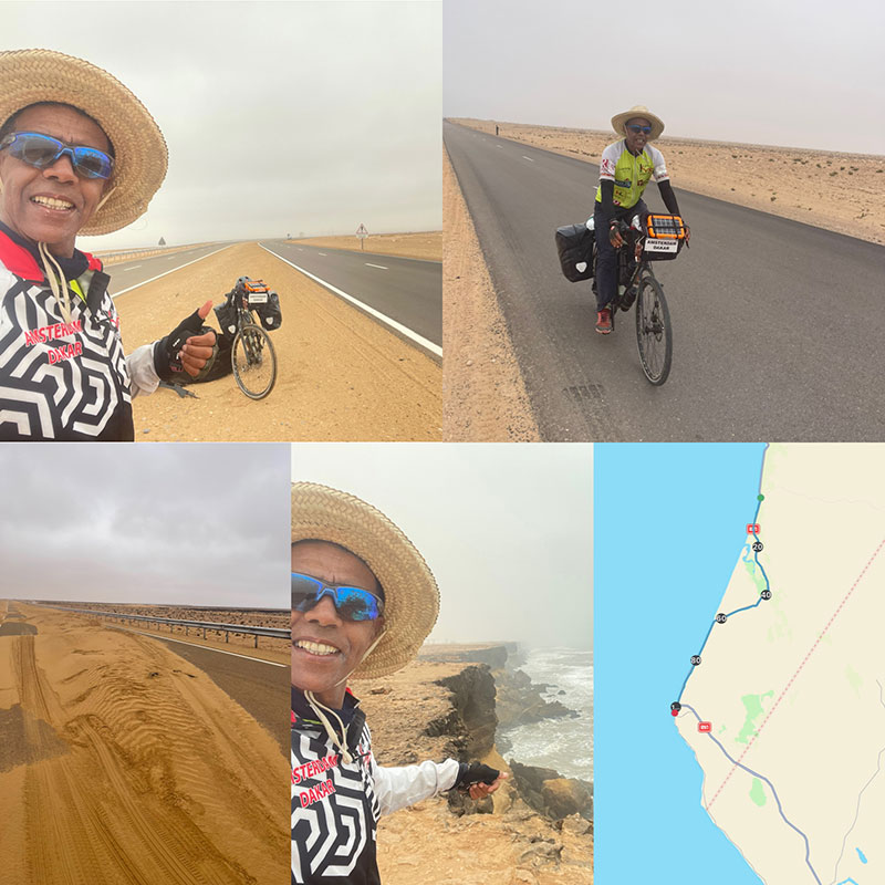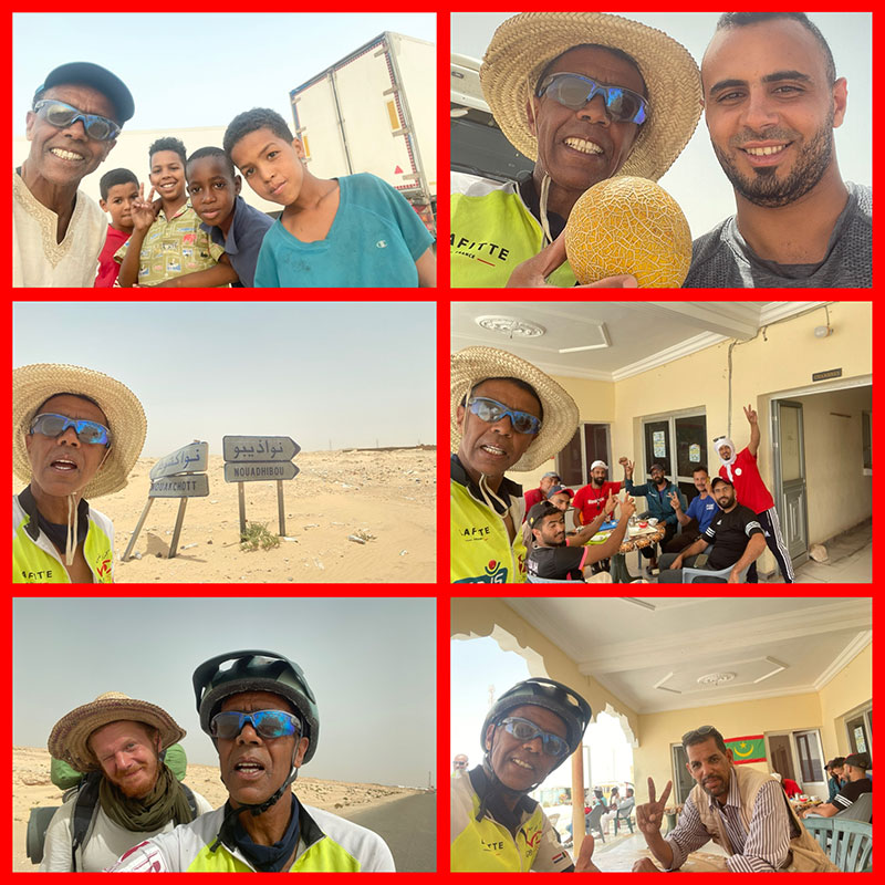 Je garderais un grand souvenir de ce pays, j’y suis venu deux fois la première fois j’ai fait la course la plus longue au monde 333 km non-stop j’ai terminé cinquième, la seconde fois 160km et maintenant à vélo. Je quitte la Mauritanie et bonjour le Sénégal.