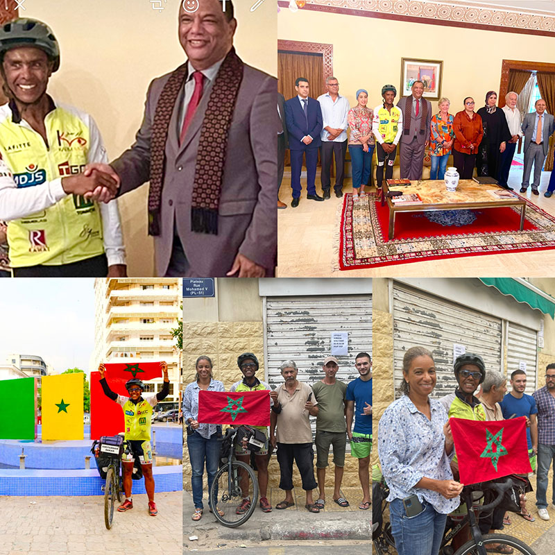 Mon départ d’Agadir à 11h30 a été donné par les autorités de la ville, présentes également des personnes de l’office du tourisme et d’associations qui sont venus m’offrir un bouquet de fleurs, un diplôme et m’encourager.