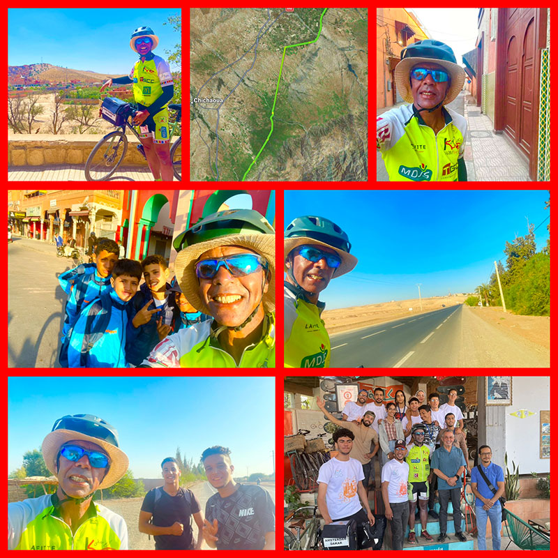 Un super accueil organisé par mon copain Amine Kabbaj à mon arrivée à Marrakech, des jeunes de l’association Pikala se sont joints à moi à l’entrée de la ville de Marrakech, une journaliste était présente ainsi que Myriam El Mahiri la présidente de tir à l’arc.